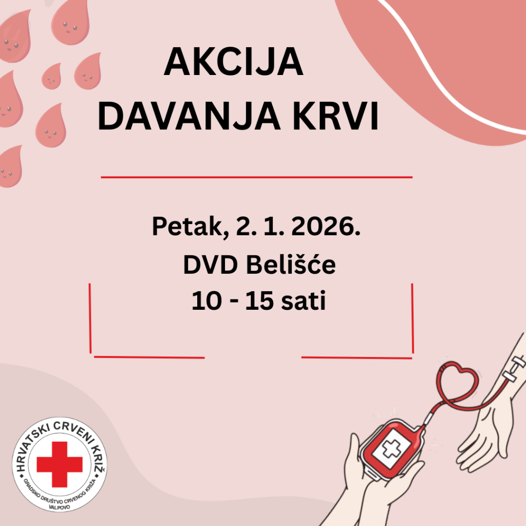 Akcija će se održati u petak, 2. siječnja 2026. godine, u prostorijama Dobrovoljnog vatrogasnog društva Belišće, u Željezničkoj ulici 11, u vremenu od 10 do 15 sati.