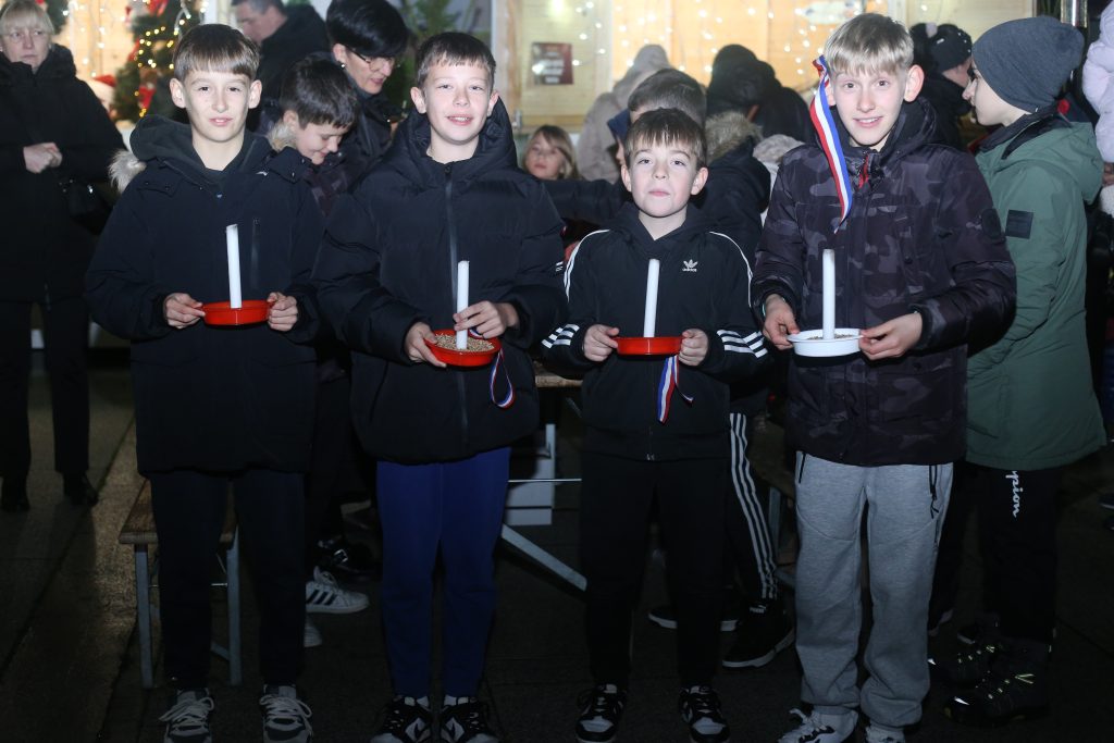Treću svijeću upalio je Izak Ćužić sa svojom mješovitom vrtićkom skupinom „Ježići“ iz Dječjeg vrtića „Maslačak“ Belišće, koju je vodila odgojiteljica Danijela Falamić. Njihova prisutnost i osmjesi podsjetili su sve prisutne na važnost zajedništva i dječje radosti u ovo adventsko vrijeme.