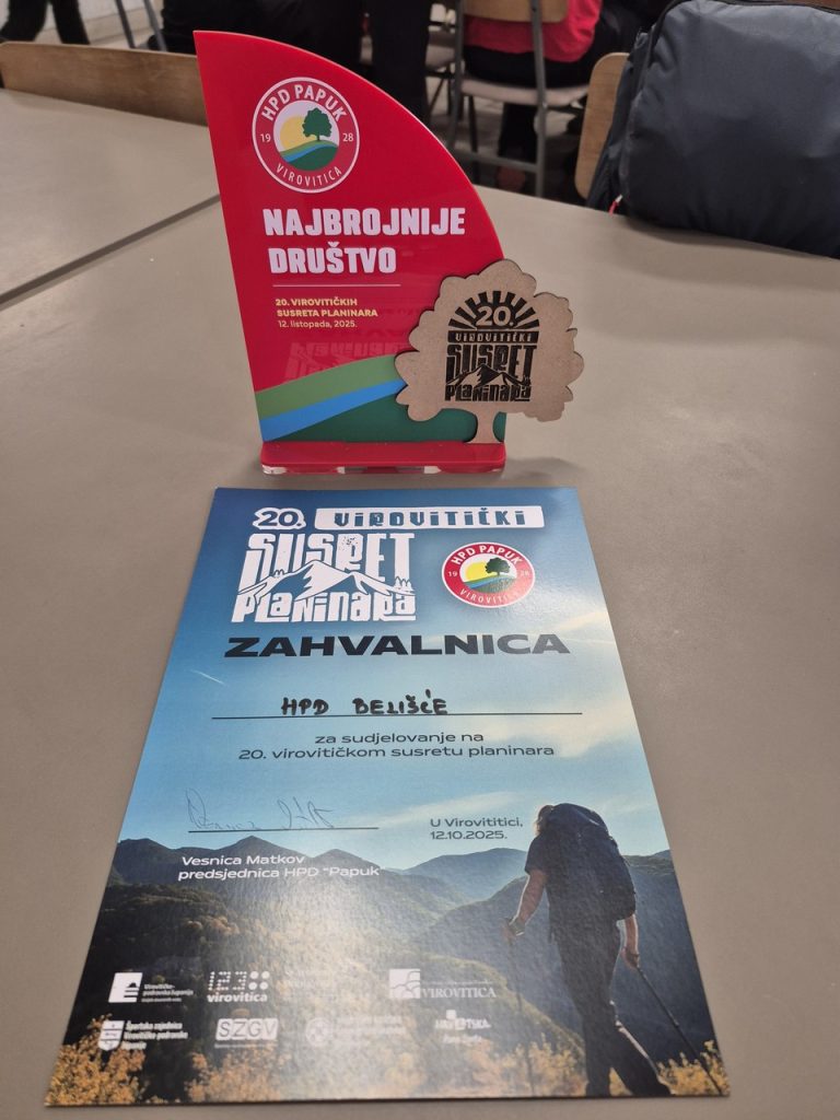 U nedjelju ujutro, 12. listopada, 44 planinara HPD Belišća odlazi prema Virovitici na 20. Virovitičke susrete planinara u organizaciji HPD Papuk Virovitica.