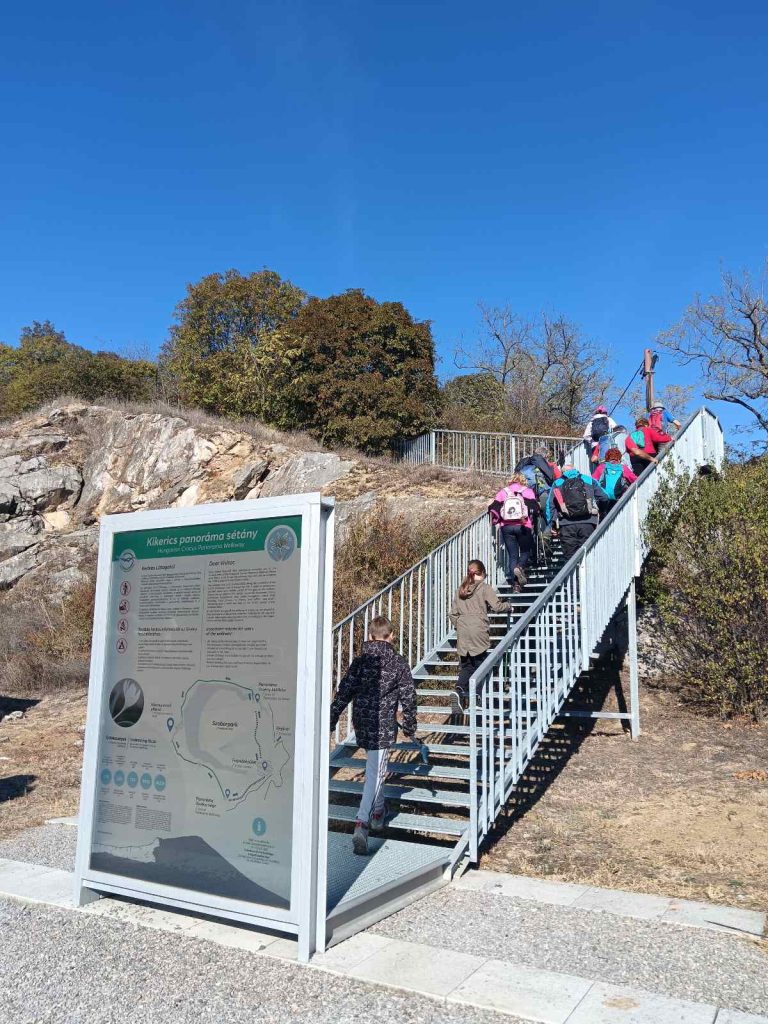 Južna strana brda je travnata, s nešto kamenja i oskudnim grmljem, a sjeverna je pod šumom. Na uspon smo krenuli kroz Park skulptura, pa po metalnom stepeništu do vidikovca i dalje po grebenu, a silazili kroz šumu. Tijekom puta mimoilazili smo se sa povećom grupom mađarskih planinara. Na vrhu smo se malo duže zadržali. Bilo je vedro i dosta dobar vidik, sve do Krndije i Papuka.