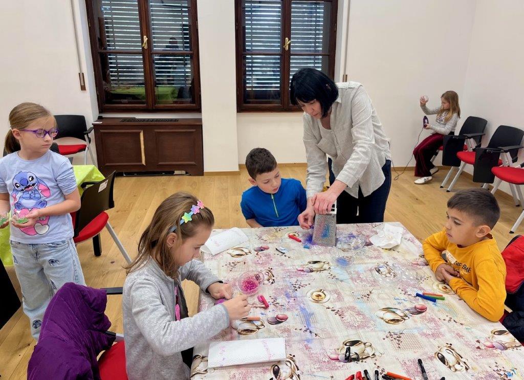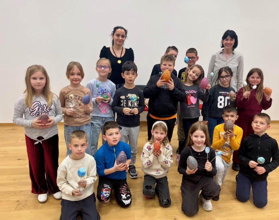 Radionica je protekla u ugodnoj i veseloj atmosferi, a mali sudionici s ponosom su predstavili svoje radove koje su ponijeli kući kao uspomenu na još jedno kreativno druženje.