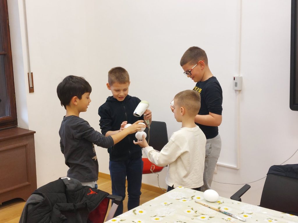 Uz stručno vodstvo Tina Lackovića, slikara amatera koji je i član likovne udruge Bel-art iz Belišća, učenici osnovnoškolskog uzrasta imali su priliku upoznati se s osnovama slikanja akrilnim bojama i raznim drugim materijalima. Pritom su razvijali svoju kreativnost i likovne vještine koristeći hobby jaja, pastele, akrilne i drvene boje te gips. Polaznici su oslikavali pisanice apstraktnim motivima, uz pomoć mašte, boje i raznolikih tehnika ukrašavanja.