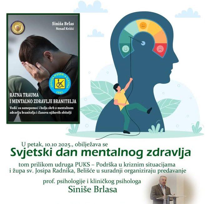 Povodom Svjetskog dana mentalnog zdravlja, u suradnji sa Župom sv. Josipa Radnika Belišće, udruga PUKS – Podrška u kriznim situacijama organizira predavanje prof. psihologije i kliničkog psihologa Siniše Brlasa.