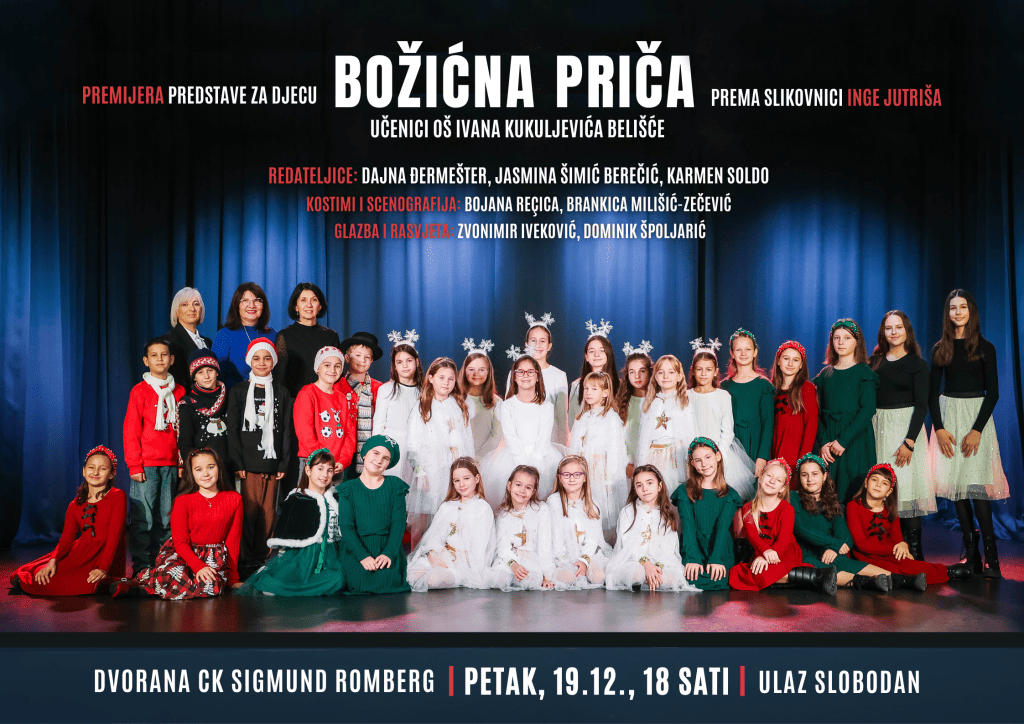 Centar za kulturu Sigmund Romberg vas poziva na premijeru predstave za djecu “Božićna priča” koja će se održati u petak, 19. prosinca 2025. godine, u 18 sati, u dvorani Centra.