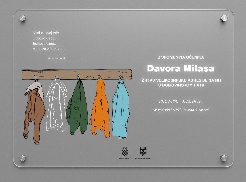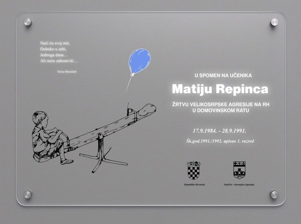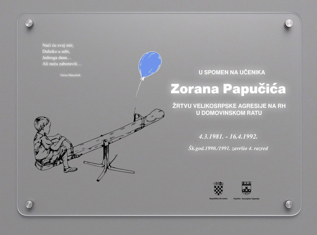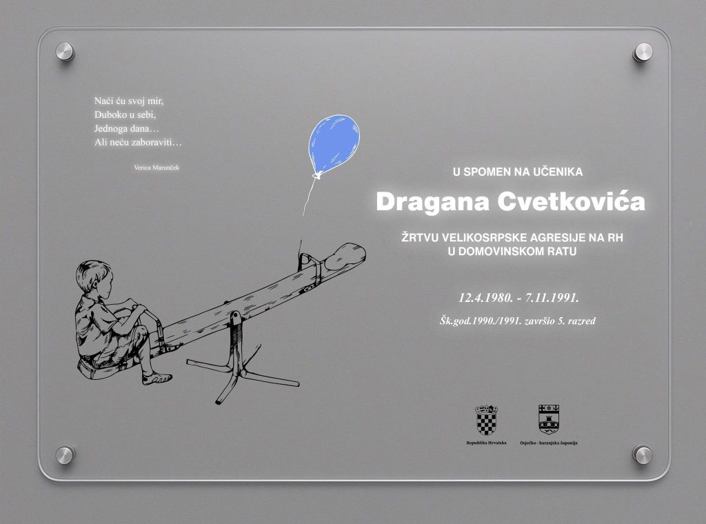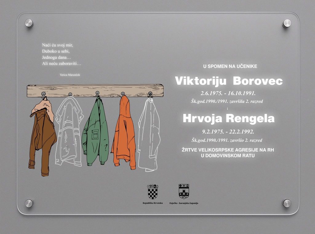 U osnovnim i srednjim školama diljem Osječko-baranjske županije postavljeno je 17 spomen-ploča u trajni spomen na 21 dijete koje je izgubilo život tijekom Domovinskog rata na području županije. Ploče su postavljene kako bi se sačuvala uspomena na djecu čije je djetinjstvo prekinuto ratom – na učenike čija su imena nekoć ispunjavala školske dnevnike i hodnike, a danas ostaju trajno upisana u povijest.