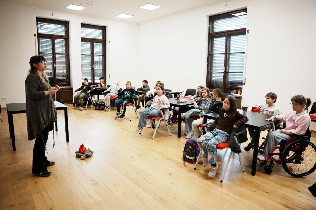 Na radionici „Mudrost bajke“ sudjelovali su predškolci vrtićke skupine „Čarobnjaci“ Dječjeg vrtića Maslačak Belišće koji su došli u pratnji svojih odgojitelja. Početak radionice bio je predviđen za kratko uvodno izlaganje i storytelling izvedbu, nakon čega je uslijedila analiza priče. Djeca su individualno osmišljavala svog „čarobnog pomagača“, a radionica je zaključena zajedničkim izmišljanjem i pripovijedanjem potpuno nove, originalne bajke. Time su postignuti glavni ciljevi radionice – poticanje usmenog izražavanja, razvijanje svijesti o baštini, osnaživanje samopouzdanja u stvaralaštvu te usvajanje osnovne strukture bajke.