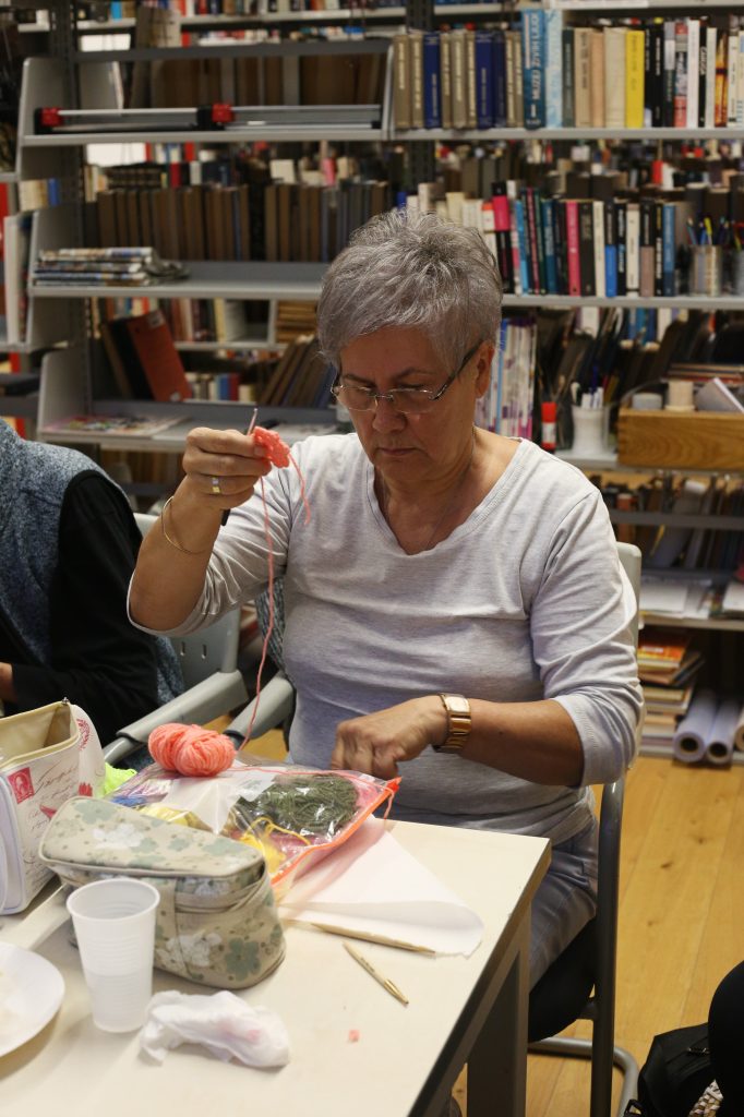 Ova je radionica bila posebna jer su se uobičajenoj ekipi žena pridružile tri nove žene, početnice u pletenju. Njima je voditeljica Štrikeraja Suzana Zdunić iz Belišća pokazala osnove tehnike pletenja koje su one bez problema usvojile.