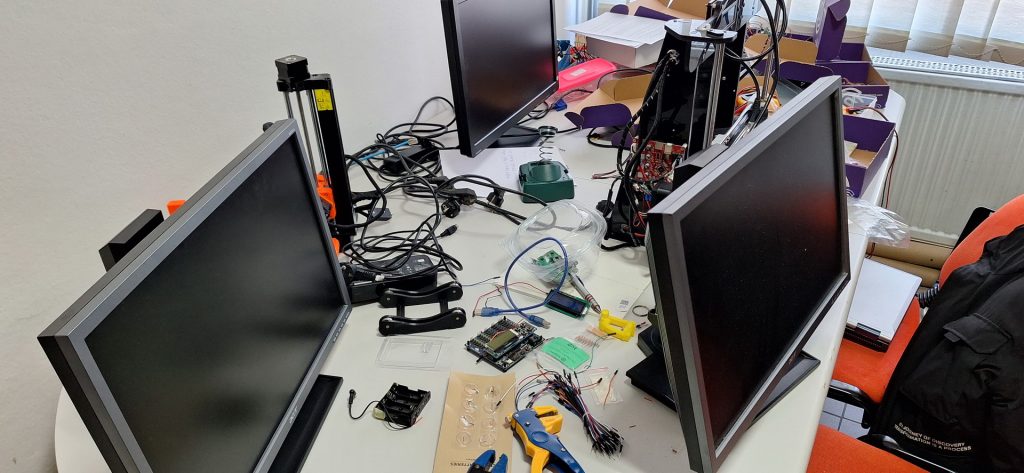 Starija skupina učenika suočila se s nešto zahtjevnijim zadatkom – pokušali su oživjeti stolno računalo proučavajući i spajajući njegove ključne komponente poput RAM‑a, tvrdog diska i matične ploče. Za mnoge je to bio prvi susret s unutrašnjosti računala, što je izazvalo veliko oduševljenje.